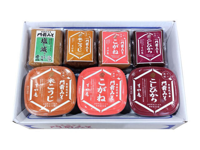 | セット内容 | カップ入みそ3種各1・コシヒカリ/こがねこし/米こうじ/塩を減らしたみそ各500g袋各1個入 |