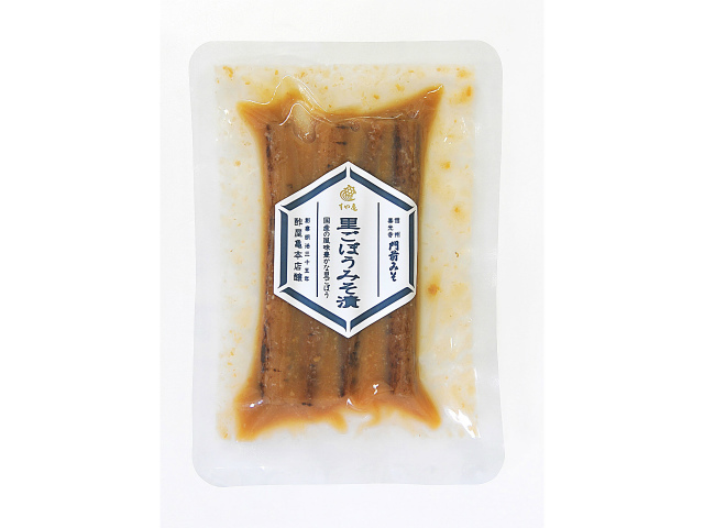 | 原材料 | 里ゴボウ(国産)/漬け原材料(みそ=米・大豆・塩/国内製造/発酵調味料/みりん/酒粕/砂糖=黒糖液)/酒精 (みそには大豆が含まれています/酒精=食用アルコール:95度サトウキビを使用/原料野菜は国産を使用) |